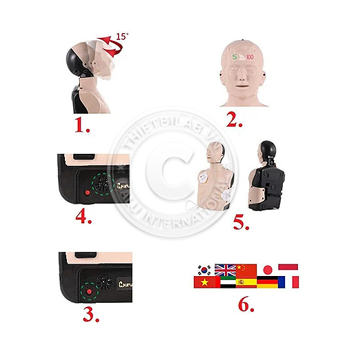 Mô hình CPR tim phổi NURUGO L330 tín hiệu đèn Led và âm thanh chỉ dẫn bằng 9 thứ tiếng như : tiếng việt, tiếng anh, tiếng Hàn, tiếng Trung.